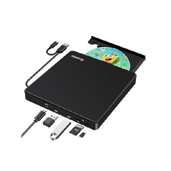 【並行輸入品】 Guamar 外付けDVDドライブ USB 3.0 DVDプレーヤー ノートパソコン用 USBポート2個とTF/SDカードスロット2個付き CDバーナー Mac PC Windows Linu