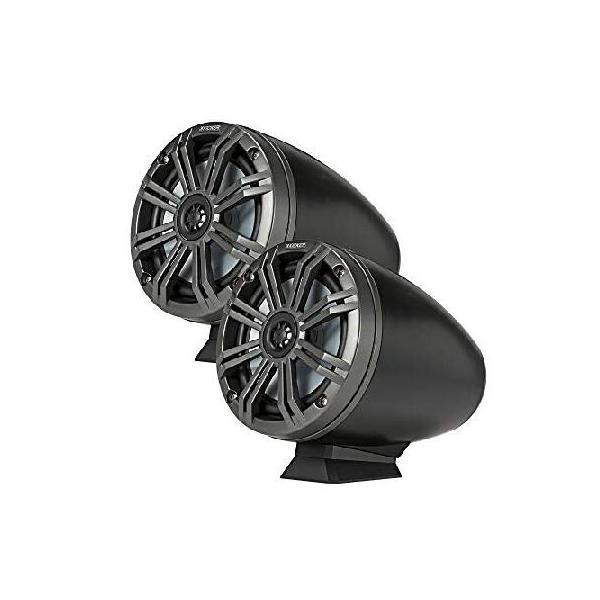 【並行輸入品】 KICKER KMFC65 6.5" Flat Mount Loaded Marine Wake Towers with 46KM654L Speakers - Charcoal Grills with Black Enclosures