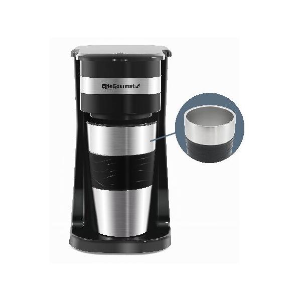 【並行輸入品】 Elite Gourmet EHC111A パーソナルシングルサーブコンパクトコーヒーメーカーブリューワー 14オンス ステンレススチール内部保温トラベルマグ