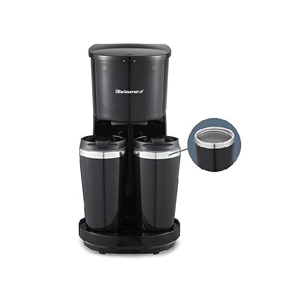 【並行輸入品】 Elite Gourmet EHC116 Dual Drip Double Coffee Maker Brewer Includes Two 14 Oz Stainless Steel Interior Thermal Travel Mugs, Compatible