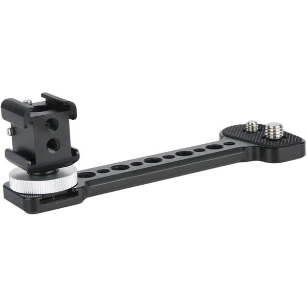 *「マルチ拡張」3コールドシュー付きで、ブラッケットに複数の1/4ネジと3/8ネジ穴が空いているから、本製品はハンドヘルドジンバルの延長ポールとして使え、カメラと周辺機器の連結が可能となります。