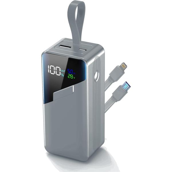 モバイルバッテリー 27000mAh 大容量 140W高出力 2つのケーブル内蔵 4台同時充電 PD3.1対応 MDM (シルバー)