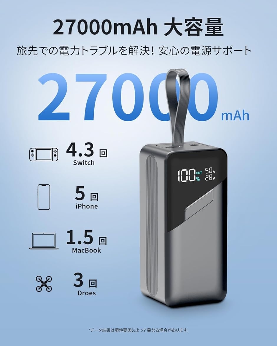 「27000mAh大容量バッテリー」超長待機時間はもちろん持ち運び便利も本製品のキーポイントで、生活上人気である商品になれます。