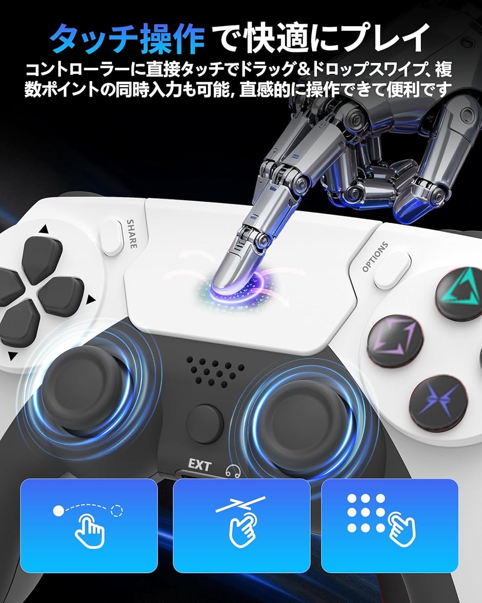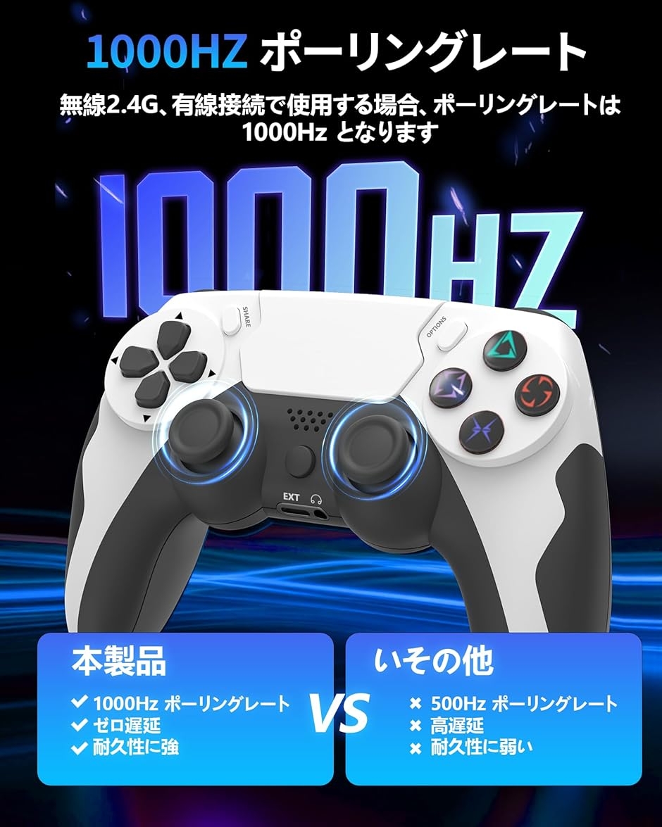 - バリエーションコード : 2brf5df9dg商品コード2bup0g8j1d商品名PC コントローラーeスポーツ専用ゲームパッド 3D ホール効果スティック トリガー切替対応 1000Hz ポーリングレートPS4 ゲームパッド マクロ機能 6軸ジャイロセンサー搭載ブランドFUSSOPカラーホワイト「多機種対応&2モード接続」このゲームパッドコントローラーは Android、iOS、PS4、Windows(7/8/10)、PC、Steam Deckなどに対応した、対応機種の中で、快適かつ安定したプレイが可能です。さらに、有線接続、Bluetoothの2種類の接続方式にも対応しており、付属のUSBケーブルでPS4本体に接続するとペアリングが完了します。P4やパソコンとの通信距離は最大8mとなっており、コントローラーを4つ同時に使用できます。️PC接続方法:SHAREボタンとPSボタンを長押ししてペアリングモードに進入すると、それからホームキーを押してLEDライトが速く点滅した後にを検索することができます。なので操作の自由度が高く、遅延がなく、ゲームをスッキリプレイできます。「超高速 1000Hz ポーリング レート・低遅延」P48 pc コントローラー は、有線接続とスマートに自動接続接続の両方で最大1000Hzの超高速ポーリングレートに対応。遅延1msを実現、応答速度が50%アップ一般的なゲームパッドと比較して高精度かつ低遅延な操作体験を実現します。「ストリートファイター6」の1フレーム単位の“キャンセルコンボ”も、「Apexレジェンズ」の振り向き>ADSの瞬発操作も、操作の遅れを一切感じない、レスポンス。8 メートルの距離で遅延がゼロで、高速フィードバック、瞬時の送信、安定性があります。格闘・FPSなどの競技ゲームにも最適。「3Dホール効果スティック搭載&マイクロスイッチトリガー切替」本製品はデュアルホール電磁スティックを搭載し、0.15°の超高精度磁界検出で非接触操作を実現。360°フレキシブル回転、ゲームで細かな動きができます。物理的な摩耗・経年劣化ゼロを達成し、200万回以上の回転寿命を確保しています。高耐久・高精度の操作を実現し、精密さとドリフト防止スティックの性能のために設計されたホールエフェクトセンサーのスティックは、特別に調整されたアルゴリズムにより、さらに一貫性と滑らかさを提供し、パフォーマンスをより一層引き出します。マイクロスイッチトリガーを同時搭載。FPS・格闘ゲームでは、わずかな入力も即座に判別し、射撃・防御・必殺技をフレーム単位で正確にコントロール。ワンタッチで切り替え、あらゆるプレイスタイルに最適なトリガー操作を常に提供する。「多彩な機能を搭載」 PS4コントローラーは高精度なボタン配置で、精密な操作が実現可能です。高精度ホール3Dスティック 、6軸ジャイロセンサー、タッチパッド、4段階振動など多様な機能を搭載し。高感度6軸ジャイロセンサーは、コントローラーの傾きや動きを検知できます。二重振動モーターを内蔵し、ゲームシーンに応じて柔らかなタッチから力強い衝撃までリアルな振動を精密に再現。銃撃の反動、爆発の轟音、激しいクラッシュまで、すべての瞬間を臨場感たっぷりに体感できます。高感度のタッチパネルで、共有ボタンを使用すると、エキサイティングなゲームクリップをいつでもソーシャルネットワークで共有できます友達とさまざまな使い方で楽しめます。「人体工学設計・長い電池寿命」 最新の人間工学に基づいたデザイン、グリップの質感は指にフィットします。ゲームパッドの両端には滑り止め加工を施し、手汗による滑りを防止する設計。家でもパーティーでも、友達とゲームをしてゲームの楽しさを味わうことができます。300gの軽量設計で負担がかかりにくい長時間のプレイでも手が疲れません。600mAh大容量バッテリーを搭載し、充電3時間で最大10時間の連続駆動が可能,大容量バッテリーで満充電約 50 日待機。※ 他ネットショップでも併売しているため、ご注文後に在庫切れとなる場合があります。予めご了承ください。※ 品薄または希少等の理由により、参考価格よりも高い価格で販売されている場合があります。ご注文の際には必ず販売価格をご確認ください。※ 沖縄県、離島または一部地域の場合、別途送料の負担をお願いする場合があります。予めご了承ください。※ お使いのモニタにより写真の色が実際の商品の色と異なる場合や、イメージに差異が生じることがあります。予めご了承ください。※ 商品の詳細(カラー・数量・サイズ 等)については、ページ内の商品説明をご確認のうえ、ご注文ください。※ モバイル版・スマホ版ページでは、お使いの端末によっては一部の情報が表示されないことがあります。すべての記載情報をご確認するには、PC版ページをご覧ください。技術基準適合証明番号:210-179003