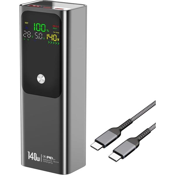 「PD3.1単ポート140W高出力」Type-Cポート(USB Power Delivery 3.1)が2つ備えて、最大140Wの超高出力でスマホやタブレットはもちろん急速充電できますが、ノートパソコン用モバイルバッテリーとして、MacBook Pro16インチのような高性能ノートPCも僅か30分で50%充電できます。機内持ち込みが可能で、旅行や出張に最適です。