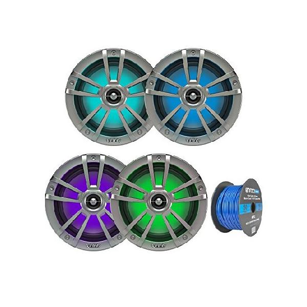 【並行輸入品】 インフィニティリファレンス 6.5インチ 同軸防水マリンボートLEDスピーカー - チタン エンロック16-G 50フィート 錫メッキワイヤ付き