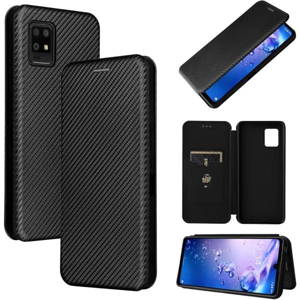 スマートフォンケース 手帳型 炭素繊維調 スタンド機能 スマホケース カバー MDM (ブラック, AQUOS Zero6)