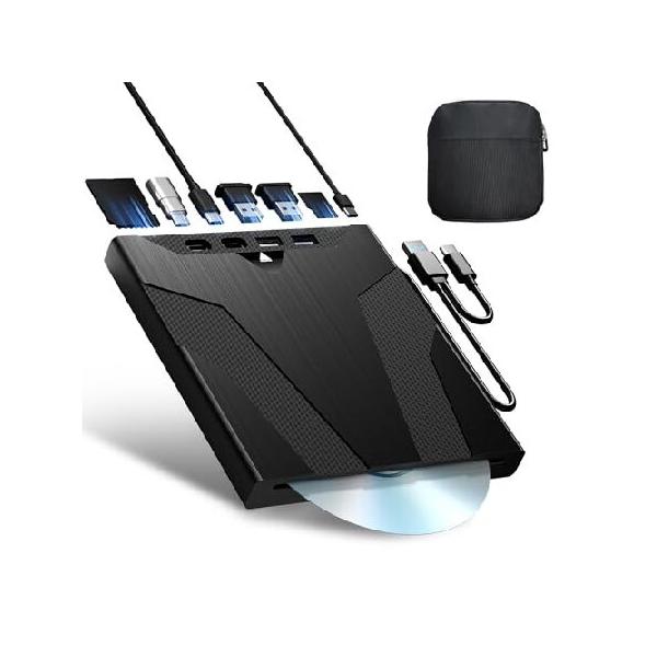 【並行輸入品】 Wbacon 8イン1 外付けCD/DVDドライブ ノートパソコン用 スロットローディングCDリーダー CDドライブ 外付けUSB DVDドライブ 外付けCDバーナー PC