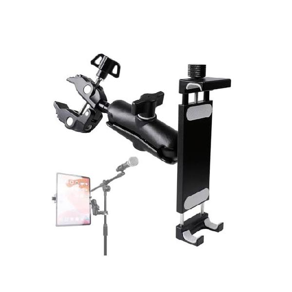 【並行輸入品】 マイクスタンド用アルミタブレットホルダー サイドマウントマイク ミュージックスタンド すべてのiPad用 360°Rotatabeタブレットスタンド