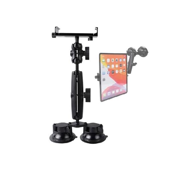 【並行輸入品】 アルミニウム製タブレットホルダー すべてのiPad用 360度調節可能 安全なダブル吸盤マウント 車 トラック フロントガラス サンルーフ用 iPad