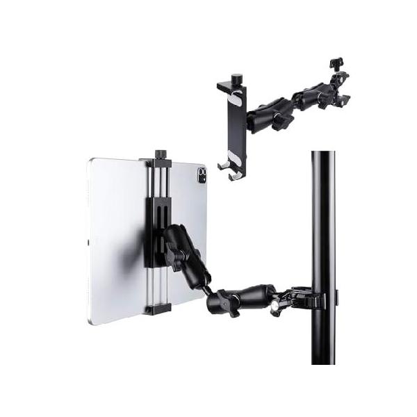 【並行輸入品】 Aluminum Dual Arm Tablet Mount with Super Clamp for Rails 0.5'' to 2'' in Diameter, Side Mount Tablet Holder for Mic Stand, Compatible