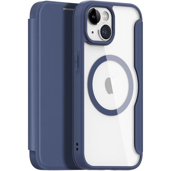 iPhone ケース 手帳型 ワイヤレス充電対応 薄型 PUレザー 背面 クリア カード入れ MDM(ブルー, iPhone 15 Plus)