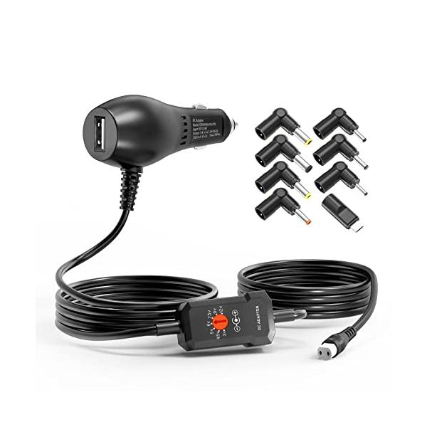 ・「電圧情報」入力:12V-24V車に対応できます。出力:3-12V、「3V、4.5V、5V、6V、7.5V、9V、12V」。色々なデバイスと互換性があります。電圧調節用のキーでお手持ちのデバイスの適切な電圧に調整ください。