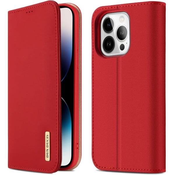 ケース 手帳型 携帯カバー 本革 財布型 耐摩擦 全面保護 磁石付き MDM (レッド, iPhone 14 Pro)