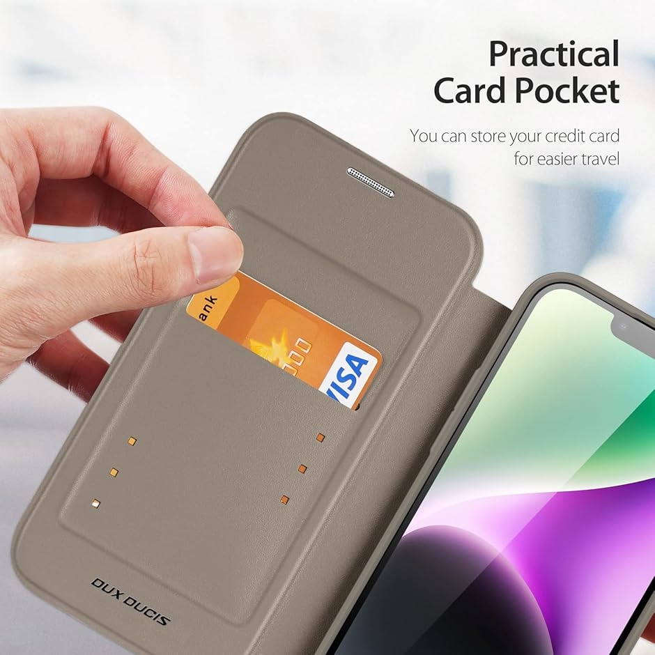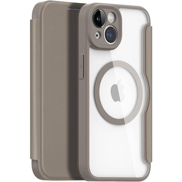 iPhone ケース 手帳型 ワイヤレス充電対応 薄型 PUレザー 背面 クリア カード入れ MDM(カーキ, iPhone 14)