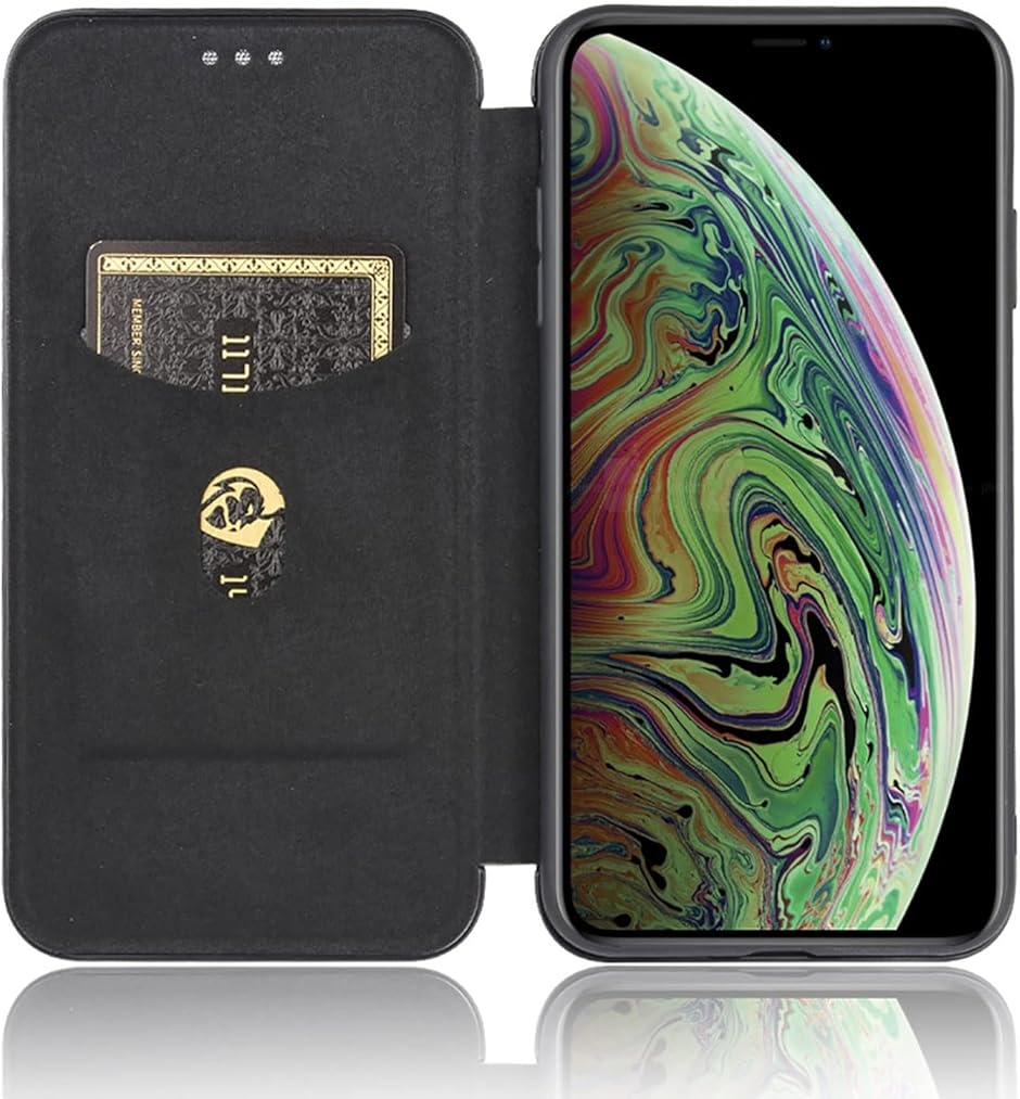 スマートフォンケース 手帳型 炭素繊維調 スタンド機能 スマホケース カバー MDM(ブラック, iPhone X/ XS)