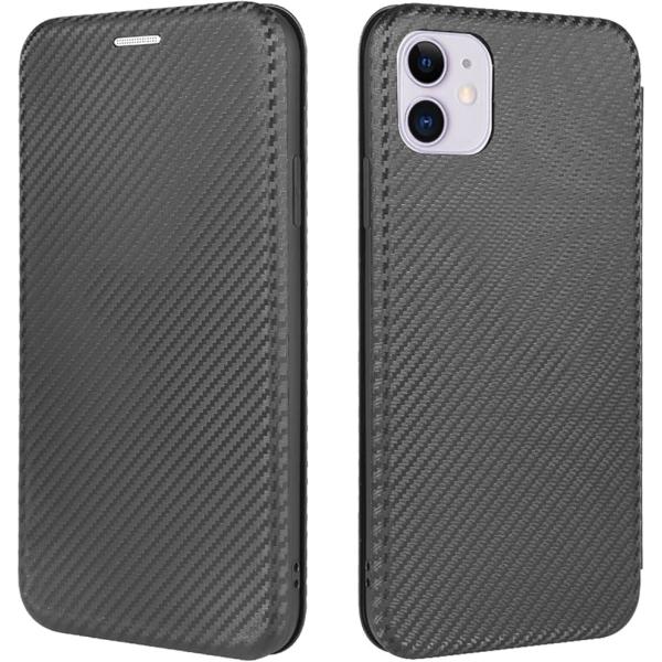 スマートフォンケース 手帳型 炭素繊維調 スタンド機能 スマホケース カバー MDM(ブラック, iPhone 11)