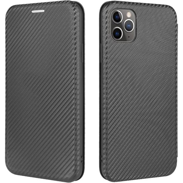 スマートフォンケース 手帳型 炭素繊維調 スタンド機能 スマホケース カバー MDM(ブラック, iPhone 11 Pro)
