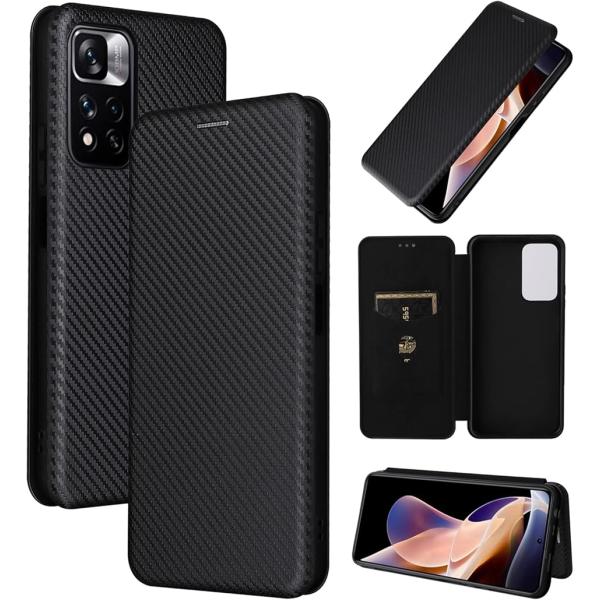 スマートフォンケース 手帳型 炭素繊維調 スタンド機能 スマホケース カバー MDM (ブラック, Redmi Note 11 Pro)