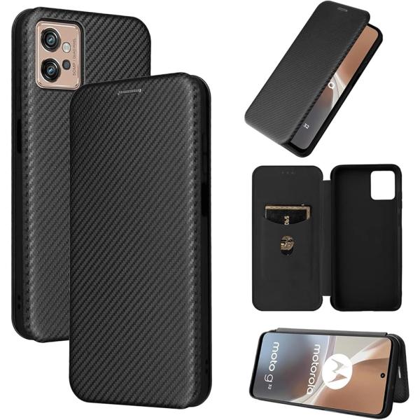 スマートフォンケース 手帳型 炭素繊維調 スタンド機能 スマホケース カバー MDM(ブラック, Motorola Moto G32)