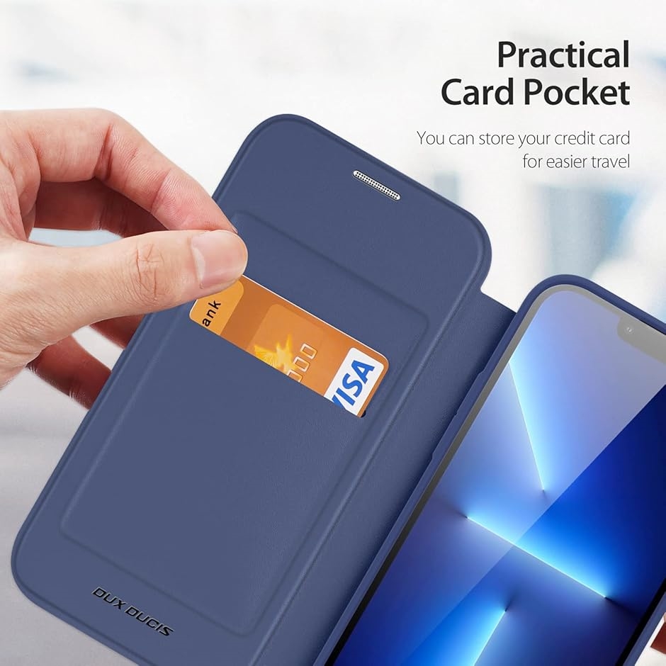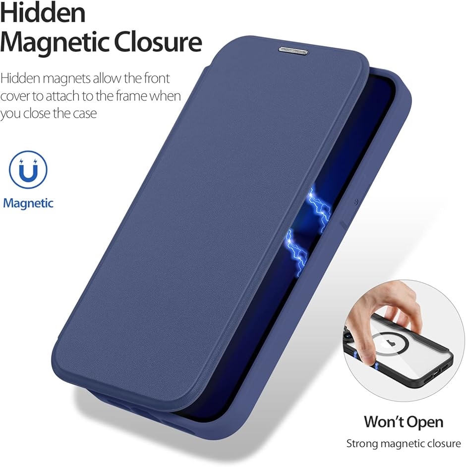 iPhone ケース 手帳型 ワイヤレス充電対応 薄型 PUレザー 背面 クリア MDM(ブルー, iPhone 14 Pro Max)
