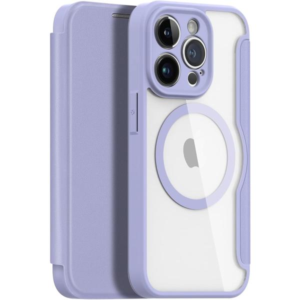iPhone ケース 手帳型 ワイヤレス充電対応 薄型 PUレザー 背面 クリア カード入れ MDM (パープル, iPhone 13 Pro)