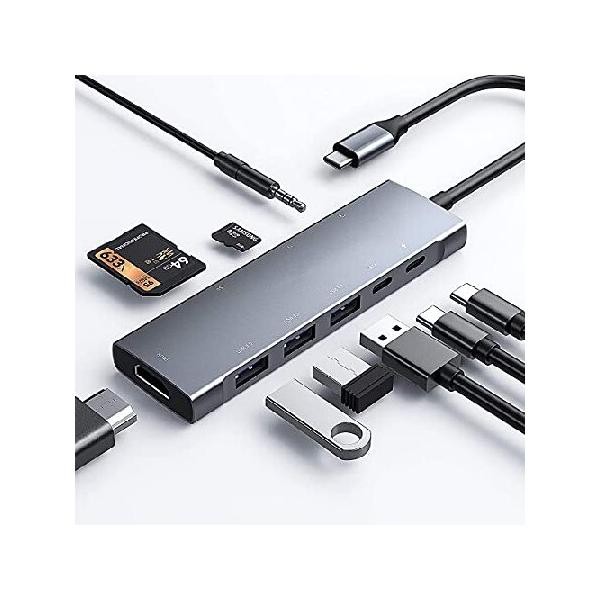 【並行輸入品】 USB Cハブ 4K@60Hz 9-in-1 USB-C マルチポートアダプター 100W PD 4K HDMI 3 USB 3.0データポート SD/TFカードリーダー iPad Pro M1 MacBook