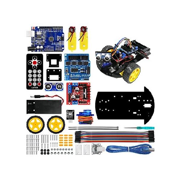 【並行輸入品】 LAFVIN スマートロボットカー 2WD シャーシキット 超音波モジュールR3ボード付き リモコン Arduino IDE DIYキットに対応