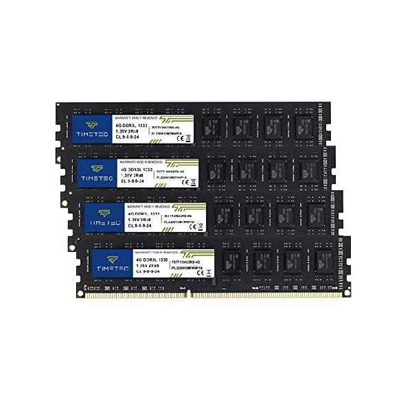 【並行輸入品】 Timetec 16GB KIT(4x4GB) DDR3 / DDR3L 1333MHz PC3-10600 ノンECCアンバッファード 1.5V / 1.35V CL9 2Rx8 低密度デュアルランク 240ピン