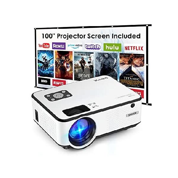 【並行輸入品】 Mini Projector, SHIMOR C9 7500L HD Outdoor Movie Projector with 100 Inch Projector Screen, 1080P Supported Compatible with TV Stick,