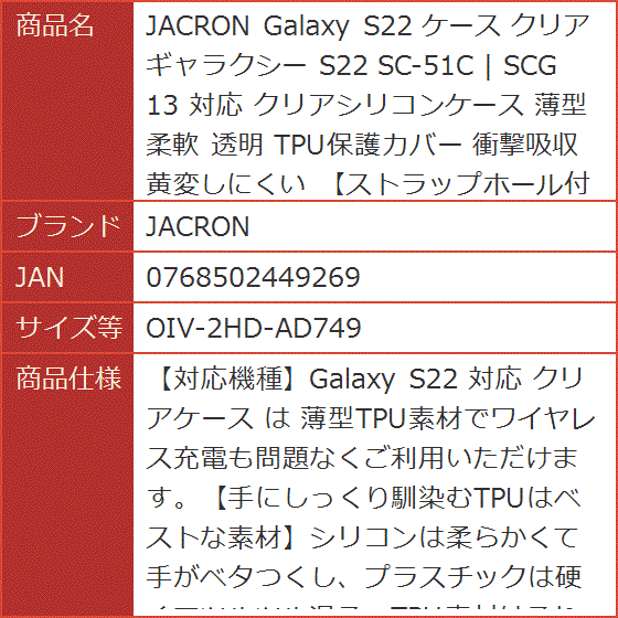 Galaxy S22 ケース クリア ギャラクシー SC-51C | SCG 13 対応 薄型 柔軟 透明(OIV-2HD-AD749)