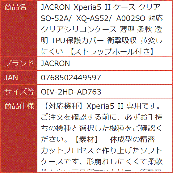 Xperia5 II ケース クリア SO-52A/ XQ-AS52/ A002SO 対応 薄型 柔軟(OIV-2HD-AD763)