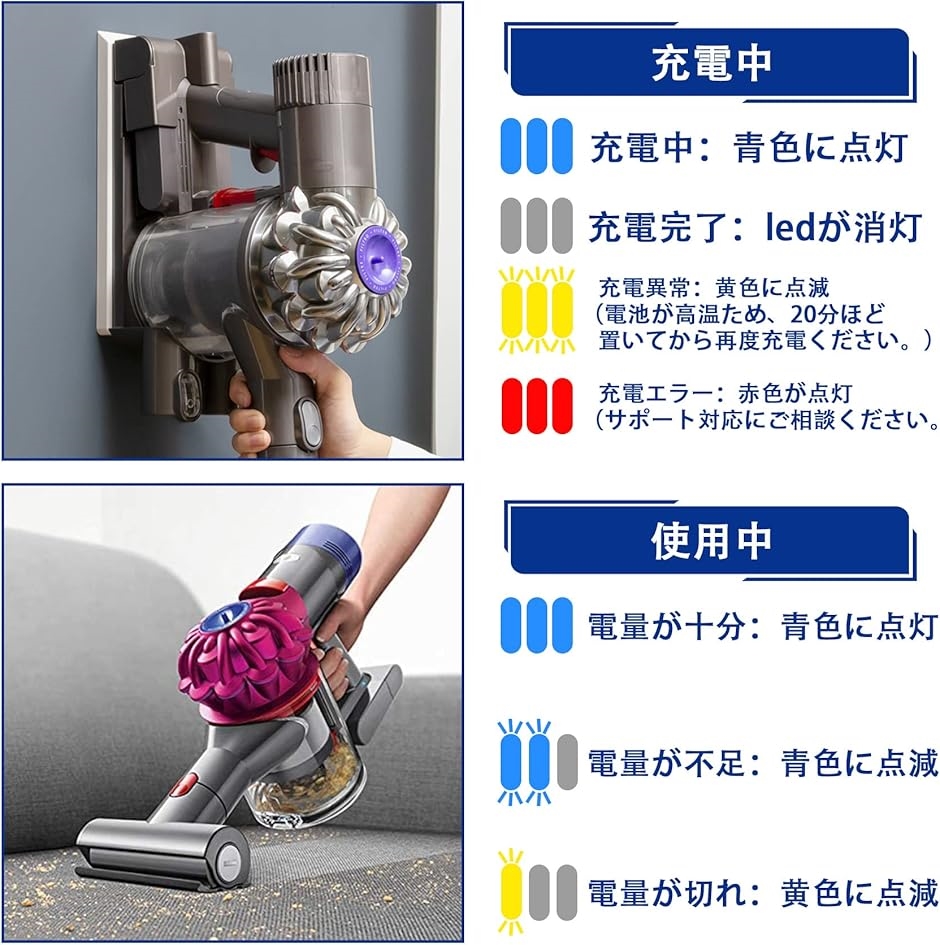 「対応型番」V8 Fluffy、V8 Fluffy+、V8 Absolute、V8 Absolute Extra、V8 Animalpro、V8 MotorheadなどV8全機種と互換性があり、壁掛けブラケットにも対応。