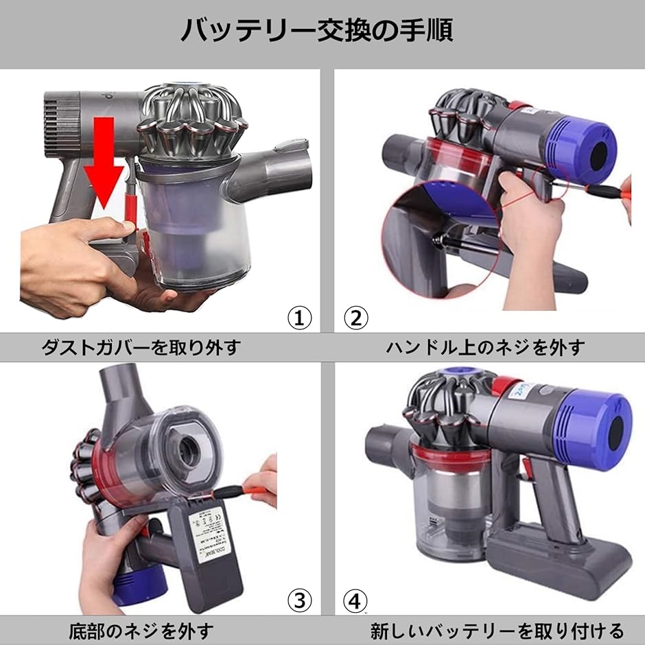 - バリエーションコード : 2b9024w58q商品コード2b68g0ndik商品名互換品 互換品 ダイソン対応 V8 バッテリー SV10 4500mAh 大容量 V8-Fluffy Fluffy+ Animalpro Absolute Absolute-Extra Motorheadに対応ブランドKUNLUNサイズ等V8バッテリー「対応型番」V8 Fluffy、V8 Fluffy+、V8 Absolute、V8 Absolute Extra、V8 Animalpro、V8 MotorheadなどV8全機種と互換性があり、壁掛けブラケットにも対応。「ご注意」「SV10 ≠ V10」、SV10はV8シリーズの掃除機であり、V10はSV12 V10シリーズです。お手持ちの型番をご確認ください。「高パワーと高性能」優質のサムスン製セルが搭載。短絡防止機能、過熱保護機能、過充電保護機能、過放電防止の保護回路を搭載,バッテリー内部セルを壊れないよう守る。電流が超えると,自動的に出力停止,バッテリーの長寿命化を実現する。「長時間作動可能/4500mAh高容量」メモリ効果がないため、継ぎ足し充電も可能。4.5Ah高パワーで毎日手軽に掃除ができますし、長くお使い頂くことが出来て家事の負担が軽減されます。「使用注意事項」1. 新品のバッテリーはご使用の前に満充電してください。2. 新品のバッテリーは満充放電を2-3回繰り返してください。3.長時間お使わない場合、満充電してから保管してください。「ECPリチウムバッテリー保護技術」短絡防止機能、過熱保護機能、過充電保護機能、過放電防止の保護回路を搭載,バッテリー内部セルを壊れないよう守る。電流が超えると,自動的に出力停止,バッテリーの長寿命化を実現する。「商品詳細」電圧:21.6V容量:4500mAh電池: リチウムイオンモデル: V8「純正充電器で充電可能」壁掛け式充電スタンドで充電可能です。青色(点減):充電中。青色(消灯):充電完了。※ 他ネットショップでも併売しているため、ご注文後に在庫切れとなる場合があります。予めご了承ください。※ 品薄または希少等の理由により、参考価格よりも高い価格で販売されている場合があります。ご注文の際には必ず販売価格をご確認ください。※ 沖縄県、離島または一部地域の場合、別途送料の負担をお願いする場合があります。予めご了承ください。※ お使いのモニタにより写真の色が実際の商品の色と異なる場合や、イメージに差異が生じることがあります。予めご了承ください。※ 商品の詳細(カラー・数量・サイズ 等)については、ページ内の商品説明をご確認のうえ、ご注文ください。※ モバイル版・スマホ版ページでは、お使いの端末によっては一部の情報が表示されないことがあります。すべての記載情報をご確認するには、PC版ページをご覧ください。*PSマーク取得済み製品*製品型番:V8届出事業者名:株式会社成洋PSマークの種類:PSE