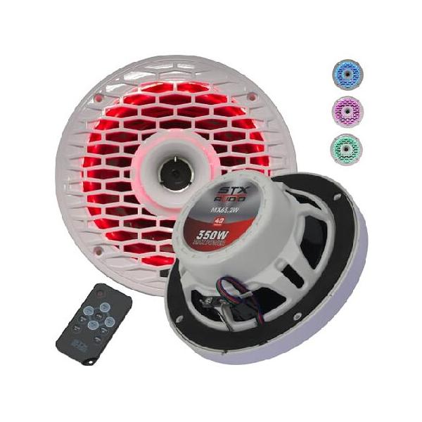 【並行輸入品】 STX Audio MX65.2W 6.5インチ 2ウェイ RGB LED マリン同軸スピーカー 最大350W 4オーム RGBイルミネーション用リモートコントロール付き防水 (ス