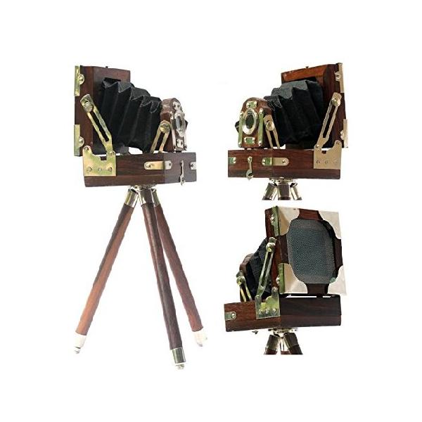 【並行輸入品】 Antique Vintage Look Film Camera Wooden Tripod Collectible Studio Gift Item Brown Color by Collectibles Buy