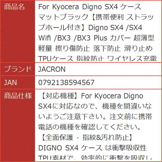 「対応機種」For Kyocera Digno SX4に対応なので、機種を間違いないようご注意下さい。