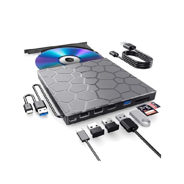 【並行輸入品】 ノートパソコン用外付けCD/DVDドライブ、ノートパソコン用DVDプレーヤー、8イン1 USB 3.0 ウルトラスリムポータブル、CDバーナー外付けディスク