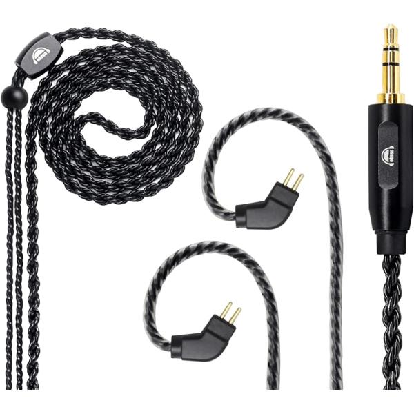 T3 2Pin リケーブル 0.75mm イヤホンケーブル 交換用 6芯 TRN用( ブラック, 0.75mm 2ピンコネクタ)