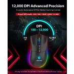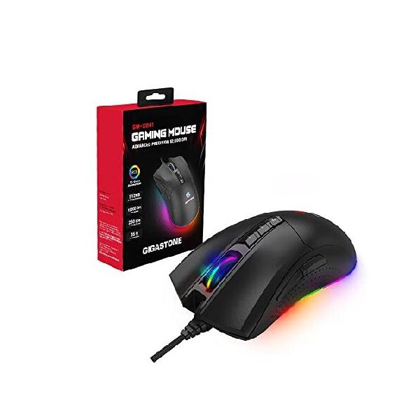 【並行輸入品】 Gigastone ゲーミング マウス 12,000 DPI 、有線ゲーミング マウス、調整可能RGB バックライト、 8個のプログラム可能ボタン、512KB オンボード