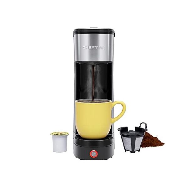 【並行輸入品】 Chefman Single Serve Coffee Maker: K-Cup & Ground Compatible, Single Cup 6-14 oz Portable Drip Coffee Machine with Filter - Perfect