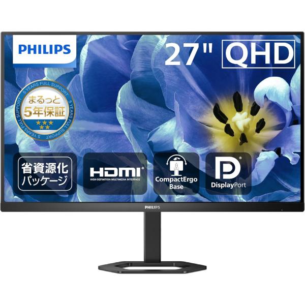 PHILIPS フィリップス 液晶ディスプレイ PCモニター 27E1N5500B/11 27インチ WQHD IPS HDMI Display Port 高さ調整 ピボット フレームレス ブルーライト軽減