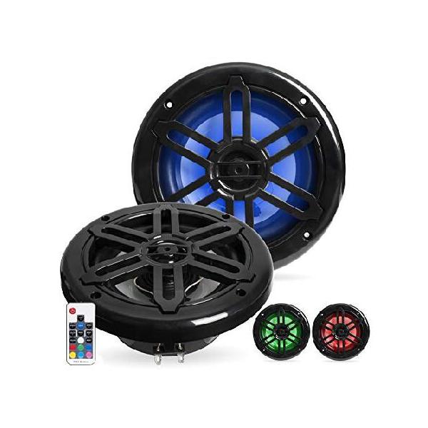 【並行輸入品】 BELVA BMRGBBK 500ワット ピーク ブラック 6.5インチ 2ウェイ 防水 マリンスピーカー RGBイルミネーション