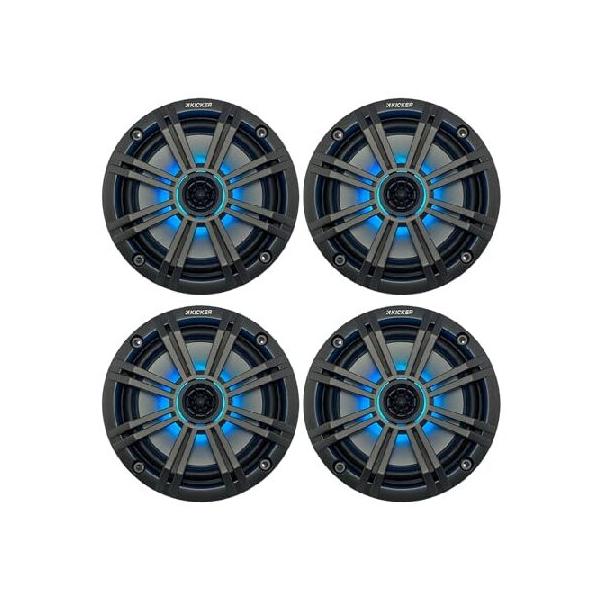 【並行輸入品】 KICKER 6.5インチ 195ワット ピークパワー マリン OEM 交換用 RGB マルチカラー LED ボート オーディオスピーカー (数量4) チャコールグリル付き