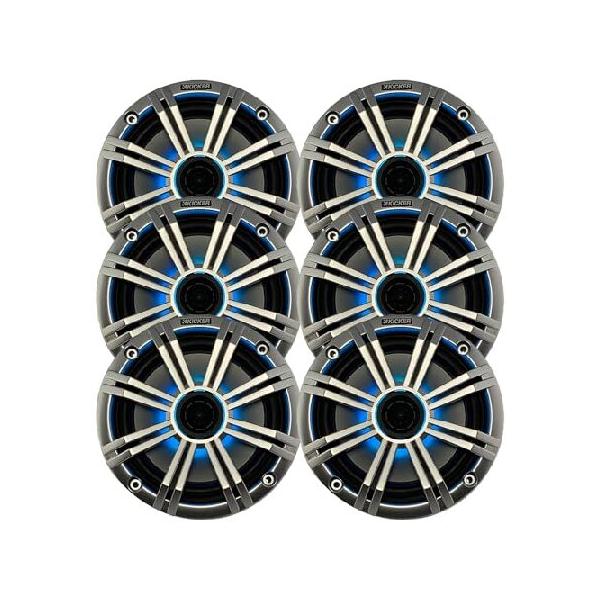 【並行輸入品】 KICKER 6.5インチ 195ワット ピークパワー マリン OEM 交換用 RGB マルチカラー LED ボート オーディオスピーカー (数量6) シルバーグリル付き