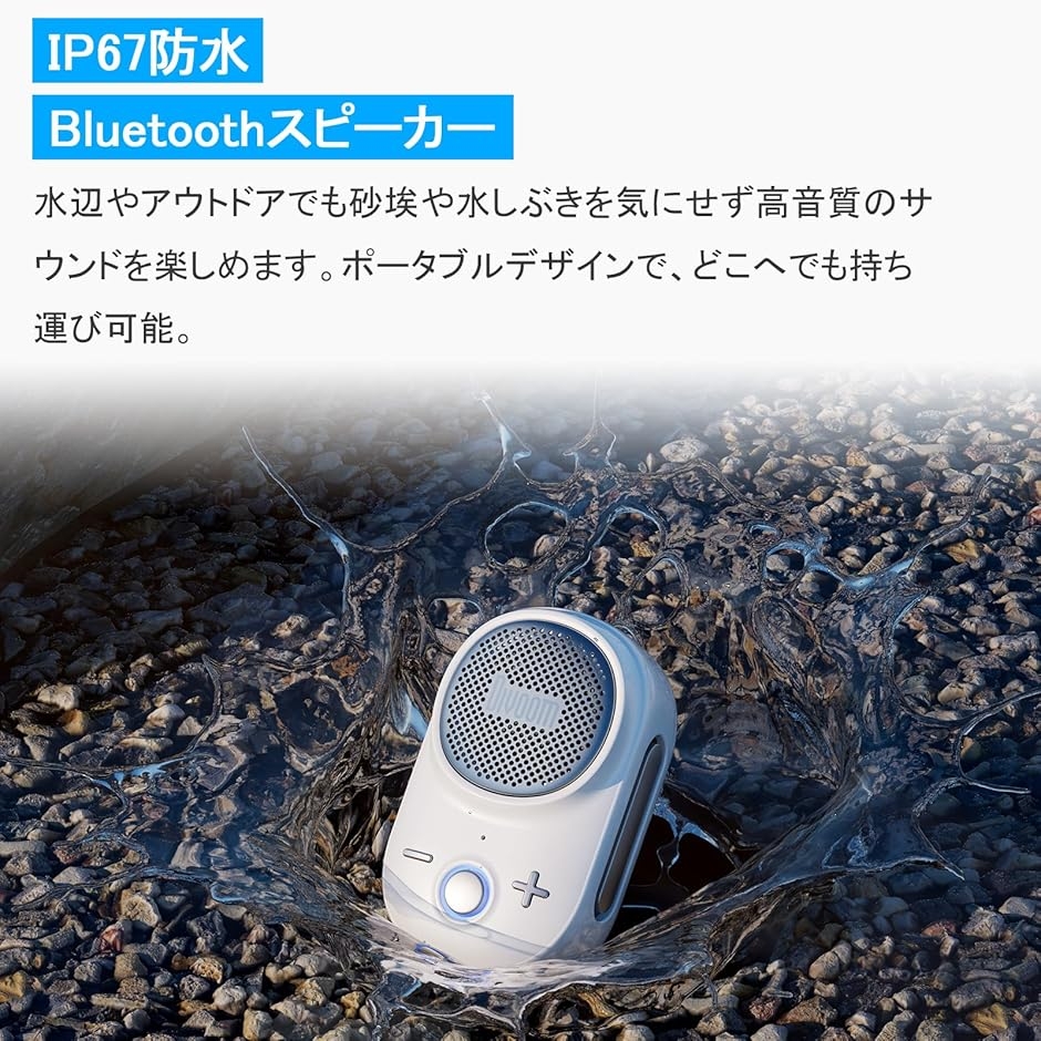 小型で軽量・クリップ式 スピーカー Bluetooth5.3 アウトドア用 ハンズフリー IP67防塵防水 耐衝撃 USB (ホワイト)