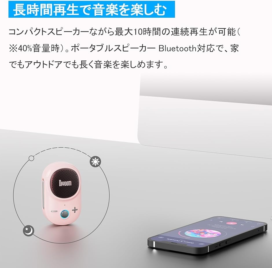 - バリエーションコード : 2bukh5r95j商品コード2bufxg6k4g商品名小型で軽量・クリップ式 スピーカー Bluetooth5.3 アウトドア用 ハンズフリー IP67防塵防水 耐衝撃 ポータブル TWS対応 強化された低音 最大10時間再生 USB Type-C充電 Itour-SブランドDivoomカラーピンク「超小型・軽量デザイン」 ポケットに入る音楽の自由手のひらにすっぽり収まる驚異のコンパクトサイズと軽さが特徴です。重さやかさばりを気にせず、ポケットや小バッグ、リュックのポケットなど、どこへでも気軽に携帯できます。従来のポータブルスピーカーとは一線を画す小ささで、音楽を持ち歩くことのハードルを劇的に下げました。外出時の荷物を抑えたい方に最適です。「アウトドア最適化」 アクティブな動きを邪魔しない伴走者。大型スピーカーの持ち運びの煩わしさとは無縁です。頑丈なクリップを備えているため、ハイキングではリュックのストラップやベルトに、サイクリングではハンドルバーやサドルバッグに、簡単にしっかり固定できます。キャンプサイトでのBGMや、川辺での釣り、公園でのんびり過ごす時など、あらゆるアウトドアシーンで、あなたの動きを妨げることなく音楽を届けます。「音質」 小さな筐体に詰まった迫力のサウンド。その小さなボディからは想像を超えるクリアで力強い音が響きます。高度なスピーカーユニットと精密な内部設計により、歪みの少ない中高音域と、コンパクトサイズながら存在感のある低音を実現。屋外の開けた環境でも、十分な音量と明瞭な音声で、音楽やポッドキャストの内容を届けます。複数人でのちょっとした集まりのBGMにも十分なパワーを発揮。「堅牢な耐久性」 天候や長時間使用も恐れない信頼感。IP67等級の防水・防塵性能を誇り、突然の雨や水しぶき、砂埃など、アウトドアの厳しい条件にも対応。多少の衝撃にも強い設計です。さらに、最大約10時間の連続再生が可能な大容量バッテリーを内蔵。フル充電すれば、一日の外出やアクティビティを通して、電池切れの心配なく音楽やコンテンツを楽しめます。急な天候変化や長時間の使用にも安心して頼れるパートナーです。「ストレスフリー収納」 生活空間を圧迫しないスマートさ。その極小サイズ故に、使用しない時の収納場所に全く困りません。デスクの引き出しの隅、本棚の隙間、キッチンの小物入れ、玄関の小スペースなど、ほんの少しの空きスペースで十分。クリップを活かして壁のフックに掛ける収納も可能で、スッキリと場所を取りません。家の中を整理整頓したい方、限られた収納スペースでも気軽に音楽を楽しみたい方にとって、これ以上ないほどの利便性を提供します。※ 他ネットショップでも併売しているため、ご注文後に在庫切れとなる場合があります。予めご了承ください。※ 品薄または希少等の理由により、参考価格よりも高い価格で販売されている場合があります。ご注文の際には必ず販売価格をご確認ください。※ 沖縄県、離島または一部地域の場合、別途送料の負担をお願いする場合があります。予めご了承ください。※ お使いのモニタにより写真の色が実際の商品の色と異なる場合や、イメージに差異が生じることがあります。予めご了承ください。※ 商品の詳細(カラー・数量・サイズ 等)については、ページ内の商品説明をご確認のうえ、ご注文ください。※ モバイル版・スマホ版ページでは、お使いの端末によっては一部の情報が表示されないことがあります。すべての記載情報をご確認するには、PC版ページをご覧ください。技術基準適合証明番号:220-JP8288DivoomのItour-Sという、革新的な超小型Bluetoothスピーカーです。本当に手のひらサイズの驚くべきコンパクトさが魅力。重さも軽く、ポケットや小さいカバンのポケットにすっぽり収まりますので、持ち運びのストレスが一切ありません。従来のポータブルスピーカーとは一線を画す小ささです。頑丈なクリップがポイント。ハイキングやトレッキングの際はリュックのストラップに、サイクリングならハンドルやサドルバッグに、パチッと簡単に固定できます。アウトドアで大きなスピーカーを持ち運ぶ煩わしさから解放され、アクティブな動きを邪魔せずに音楽が楽しめる、まさにアウトドアの最強パートナーです。」 そして、この小ささからは想像できないほど、クリアで力強い音がしっかり出ます。高度なスピーカーユニットを搭載し、屋外でも十分な音量と明瞭な音声を実現。公園でのんびりする時も、ちょっとしたキャンプの雰囲気作りにもぴったりです。アウトドアで心配な突然の雨や水しぶきも、最高レベルの「IP67」防水・防塵性能でブロック。多少の衝撃にも強く、多少水に濡れても、落としてしまっても安心です。さらに、最大約10時間もの長時間再生が可能なバッテリーを内蔵。フル充電すれば、一日の外出やアクティビティを通して、電池切れの心配なく音楽やポッドキャストをたっぷりお楽しみいただけます。最後に収
