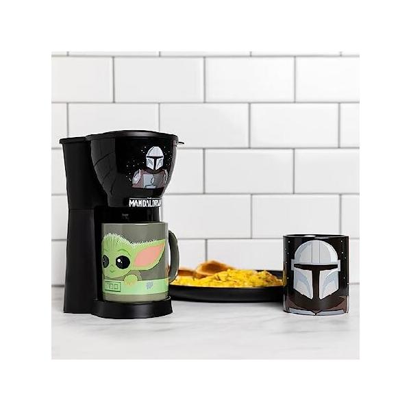 【並行輸入品】 Uncanny Brands Star Wars The Mandalorian & Baby Yoda Single Cup Coffee Maker Gift Set with 2 Mugs - Cup of Java with Mando & Baby