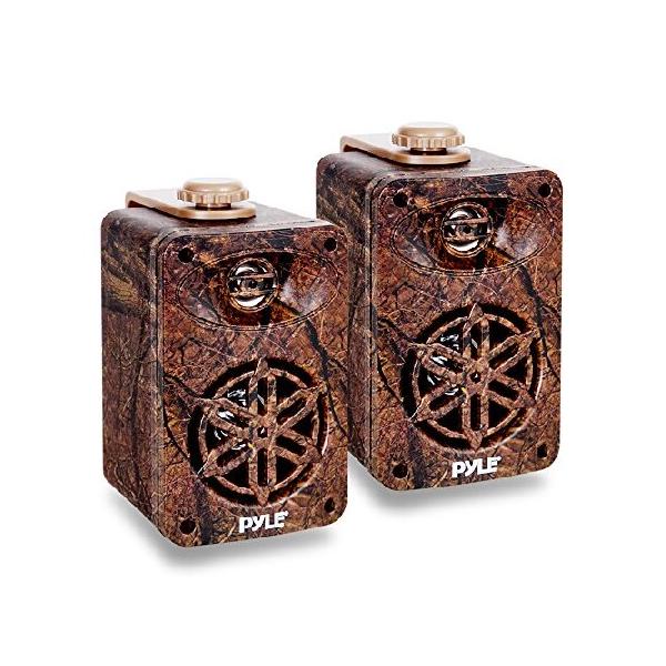【並行輸入品】 Dual Waterproof Outdoor Speaker System - 3.5 Inch Pair 3-Way Weatherproof Wall/Ceiling Mounted Camo Style Mini Dual Speakers w/Heavy