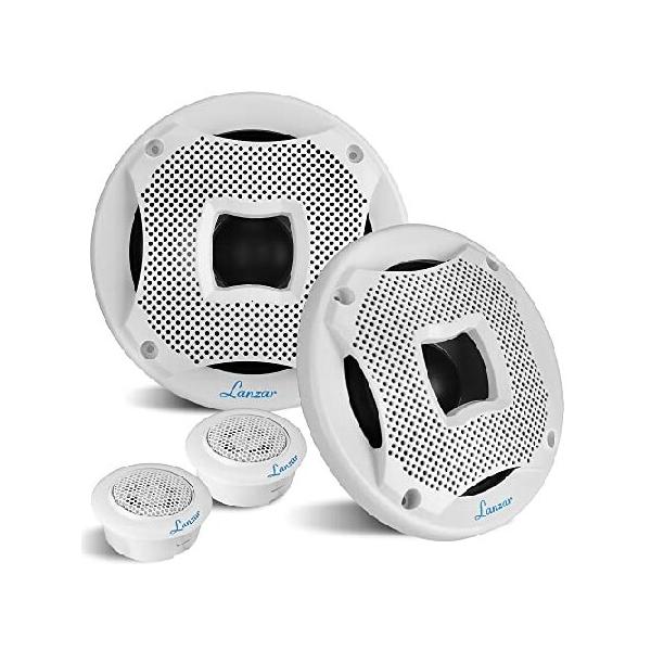 【並行輸入品】 2ウェイマリンスピーカーシステム、1組の6.5インチマリンコンポーネントスピーカー、4オームインピーダンスで最大450ワット、防水、フラッシュマ